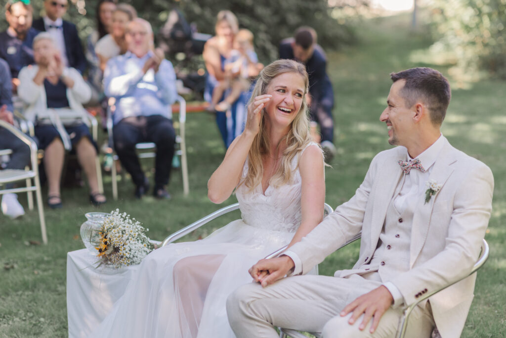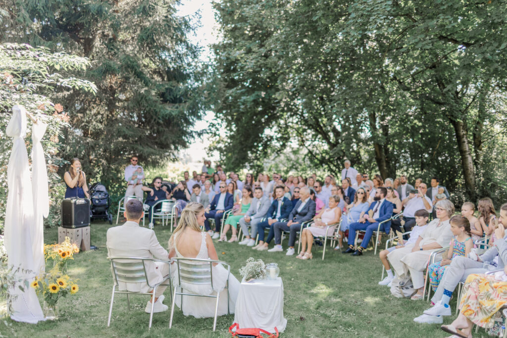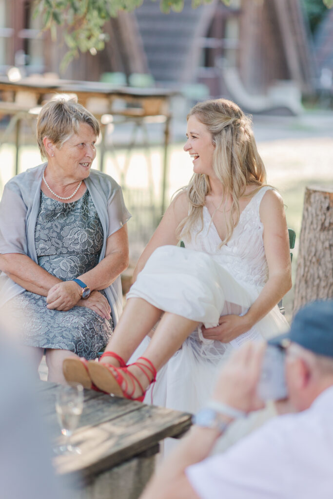 Es war der letzte Sommertag, die Braut in einem wunderschönen langen Kleid…der Bräutigam leicht aufgeregt, die Familien unterstützend an der Seite, die Gäste bezaubernd herausgeputzt und die Stimmung eher wie auf einem Festival das übers ganze Wochenende geht. Die Umweltstation in Legau bietet jede Menge Platz für die freie Trauung unter Obstbäumen, der Feier in einem kleineren Haus mit hohen Glasfenstern oder dem Saal zum Essen im ersten Stock. Es kann sogar vor Ort übernachtet werden…also ideal für eine Hochzeit im wunderschönen Allgäu. Seht selbst…
