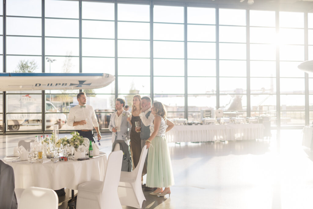 Morgens hat es noch wie aus Eimern gekübelt aber als wir aus der Kirche kamen ging die Sonne auf und wir hatten einen so wundervolleren Sektempfang mit Eiswagen und ganz tolles Abendlicht als wir dann am Dornier Hangar in Friedrichshafen ankamen. Von der Schwester eine ganz liebevolle CandyBar gezaubert und herzliche, lachende Menschen! Was will man mehr! Eine rundum gelungene Hochzeit – ich wünsche euch alles Gute für eure gemeinsame Zukunft!
