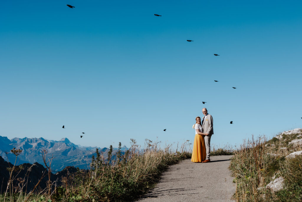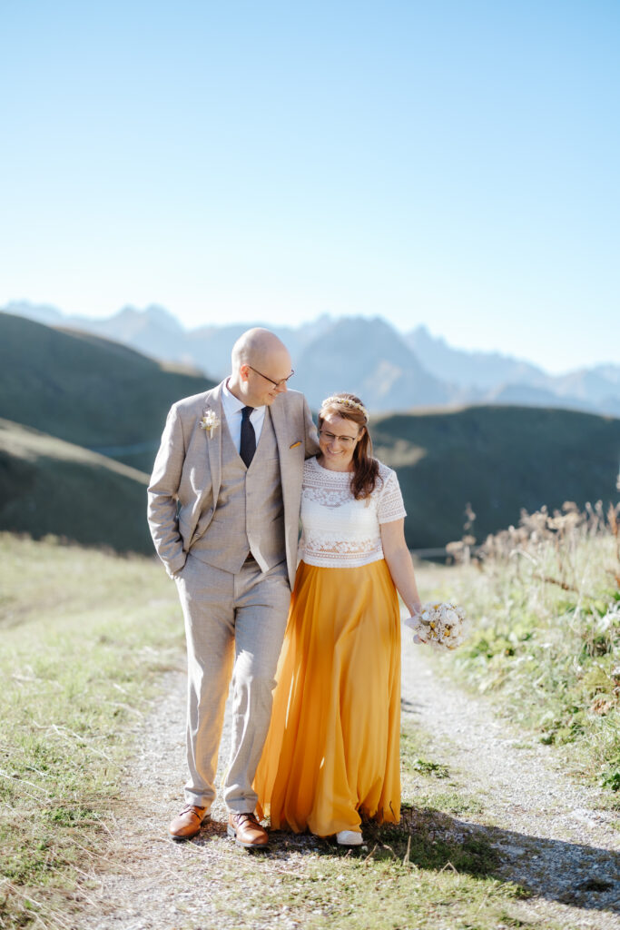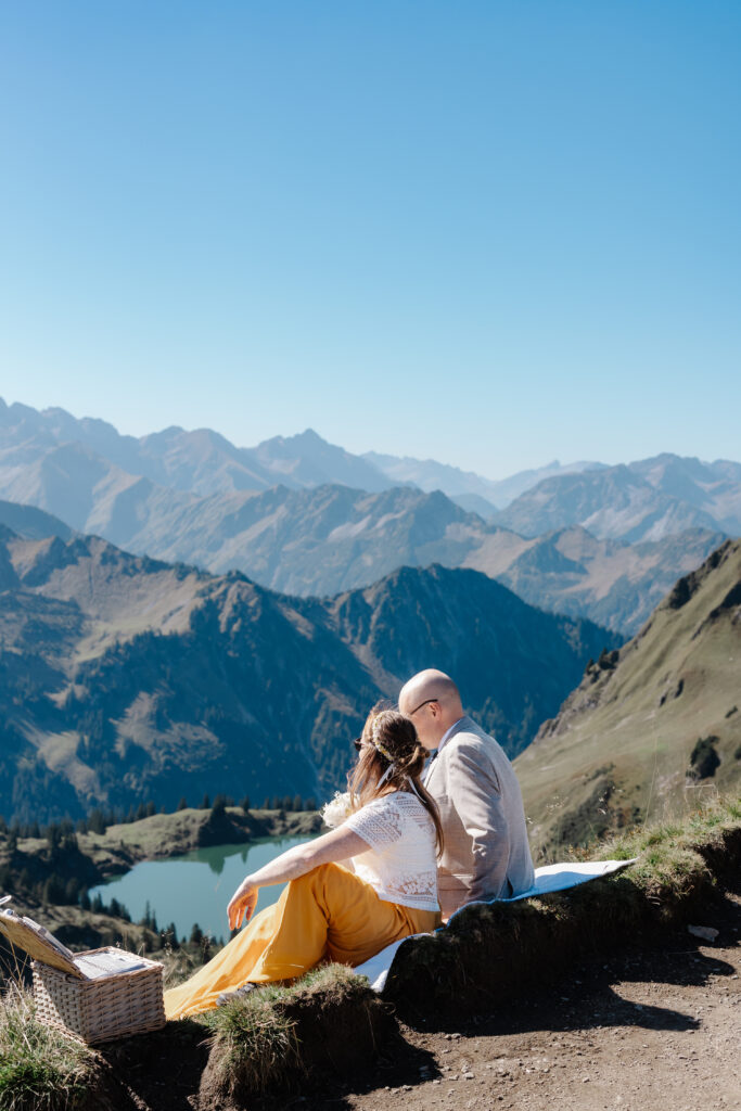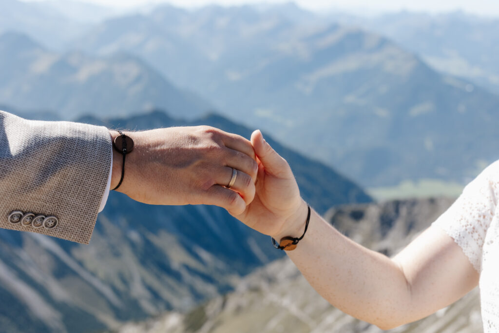 Zwei Menschen aus dem Norden fahren in den Süden, viele Berge und eine große Liebe. Nur zu zweit mit der Bahn aufs Nebelhorn um sich ganz oben das Ja-Wort zu geben. Das Standesamt Oberstdorf macht das möglich. Intim, klein, fein und mit ganz viel Gefühl. Es ist ein besonderer Ort und es war besonders mit euch. Von Herzen ein großes Dankeschön für euer Vertrauen in mich, meine Ideen und euren Mut eine Hochzeit nach eurem Geschmack durchzuziehen. Die Sonne hat an dem Tag im September mit euch um die Wette gestrahlt und ich wünsche euch alles Glück der Welt.