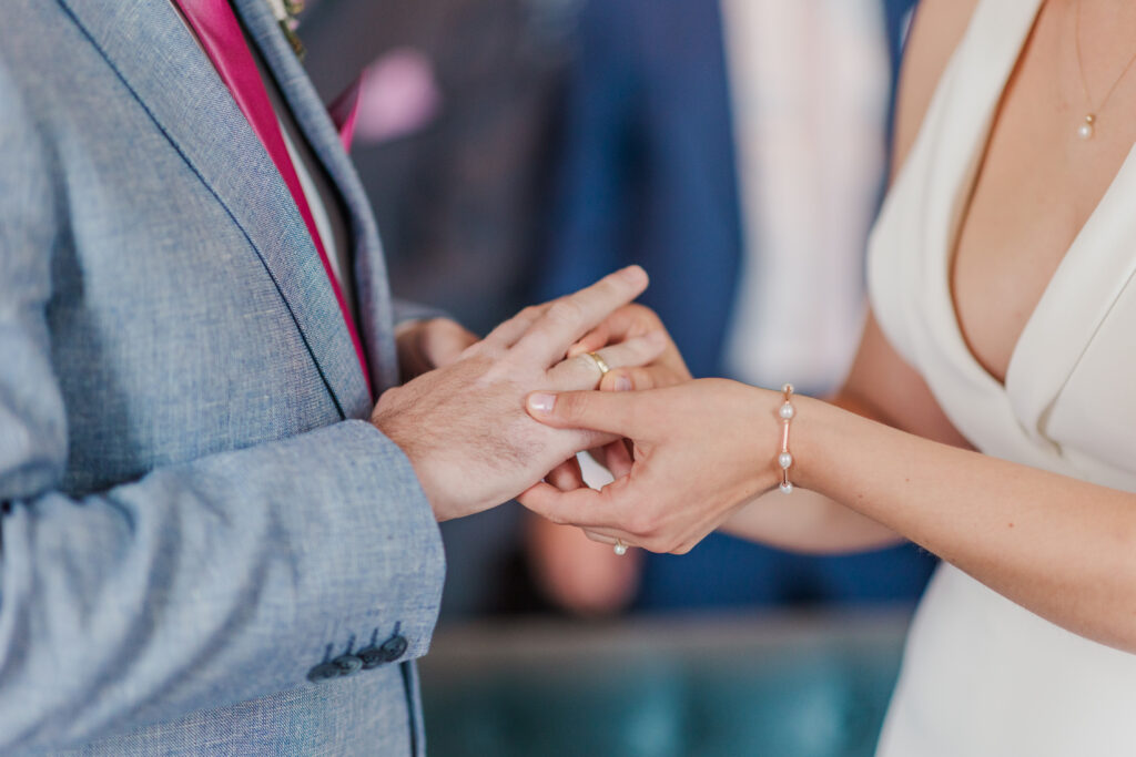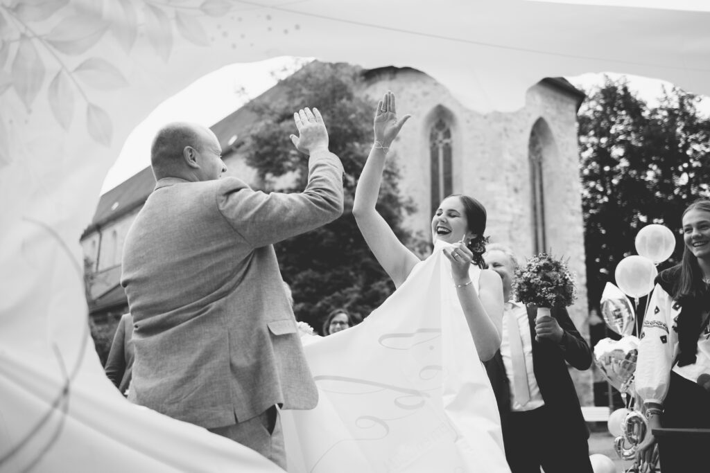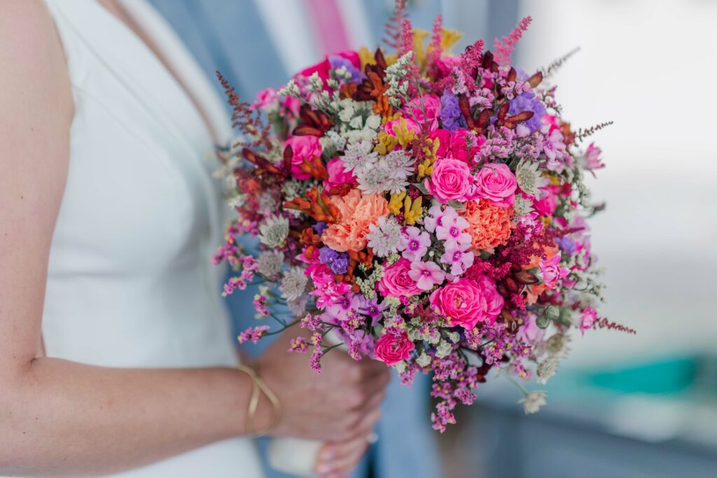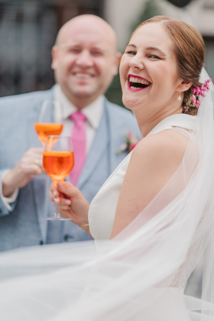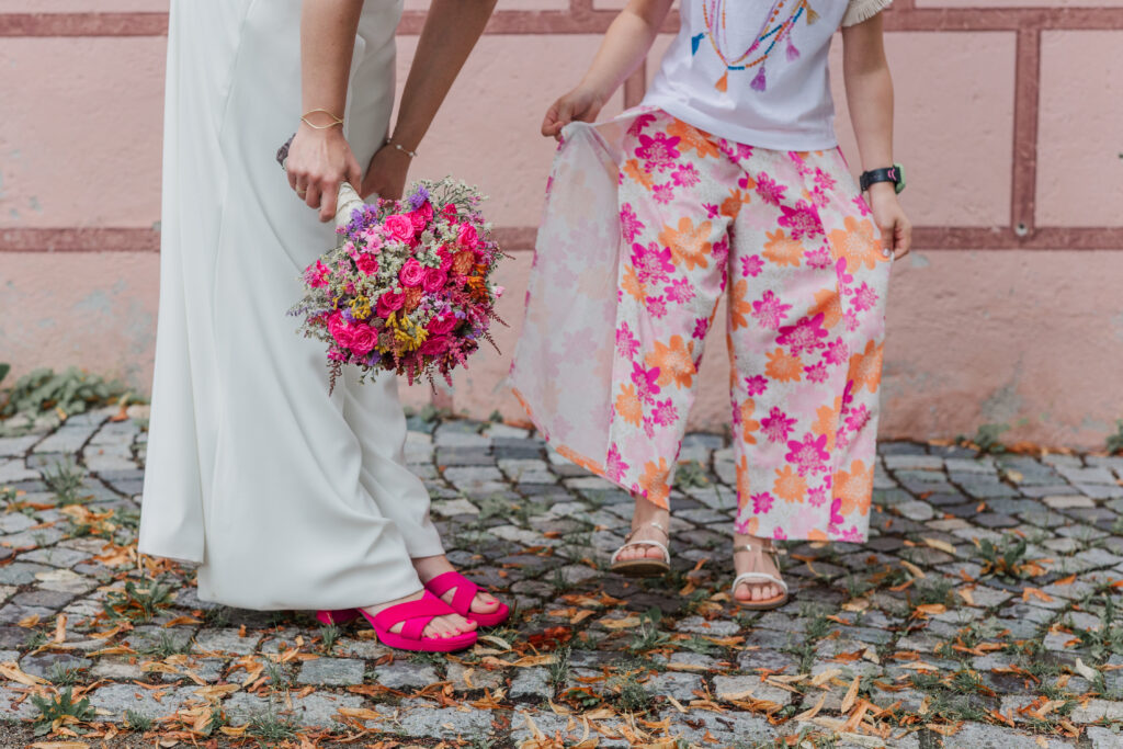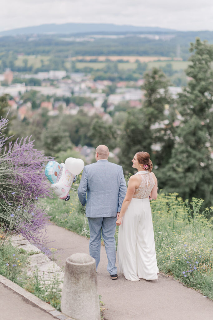 Bunt, fröhlich, herzlich und ausgelassen…so war die Stimmung bei der standesamtlichen Trauung im Turmzimmer der Veitsburg Ravensburg im Juli. Der gleiche Ort und das gleiche Datum wie bei meiner eigenen standesamtlichen Trauung – das konnte nur passen und war definitiv ein match. Einen super leckeren Sektempfang vom Atelier Tian nach der Trauung und dann ging’s über den Wochenmarkt in Richtung Innenstadt zur kirchlichen Trauung in der St. Jodoks Kirche. Danach ein zufälliges Strassenfestival mit einer Brass-Band vor dem Café nero mit leckeren Häppchen und schönen Aperitifen. Eine der wenigen Hochzeiten bei denen ich einfach etwas länger geblieben bin weil es so eine wundervolle Stimmung war. Danke euch zwei Herzenswünschen für diesen tollen Tag. Und schaut euch bitte diesen wundervollen Brautstrauss von der Wunderkammer in der Ravensburger Innenstadt an.